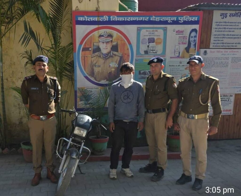 घटना के अनावरण तथा अभियुक्त की गिरफ्तारी हेतु वरिष्ठ पुलिस अधीक्षक, देहरादून द्वारा दिये गये निर्देशों के क्रम में कोतवाली विकासनगर स्तर पर पुलिस टीम का गठन किया गया, गठित टीम द्वारा घटना स्थल का निरीक्षण कर आस-पास तथा आने जाने वाले रास्तों पर लगे सीसीटीवी कैमरो की फुटेजों को चैक किया गया, साथ ही सुरागरसी/पतारसी करते हुए घटना में शामिल अभियुक्तों के संबंध में जानकारियां एकत्रित की गई। पुलिस टीम द्वारा किये जा रहे प्रयासों से दिनांक -12/11/2025 को रात्री में चैकिंग के दौरान पुलिस टीम द्वारा घटना को अजांम देने वाले अभियुुक्त सादिक उर्फ घुसपैठिया पुत्र नूर अली निवासी मगनपुरा थाना मिर्जापुर जनपद सहारनपुर को आदर्श विहार आम के बाग के पास से चोरी की गई मोटरसाइकिल स्प्लेन्डर के साथ गिरफ्तार किया गया। अभियुक्त शातिर किस्म का अपराधी है, जिसके विरूद्व अन्य राज्यो में चोरी, आर्म्स एक्ट के आधा दर्जन अभियोग पंजीकृत है।