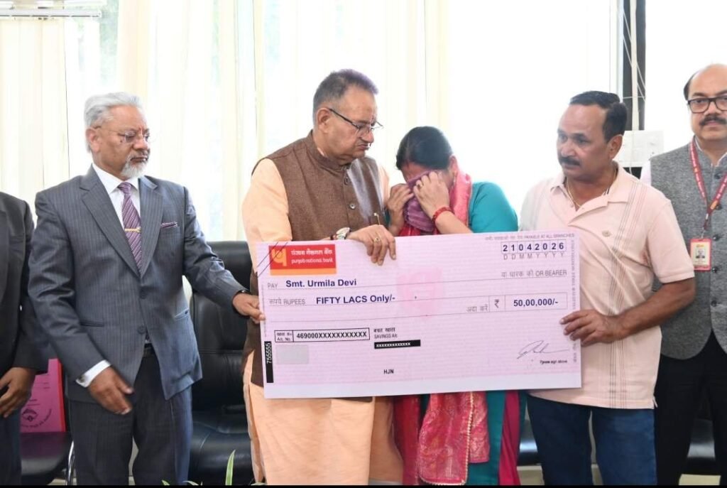 सैनिक कल्याण मंत्री गणेश जोशी ने अपने कैंप कार्यालय में दिवंगत उपनल कर्मचारी कविता गुसाईं के परिजनों को उपनल द्वारा पंजाब नेशनल बैंक के सहयोग से ₹50 लाख की शेष बीमा राशि का चेक प्रदान किया। इस दौरान दिवंगत कर्मचारी की आत्मा की शांति के लिए दो मिनट का मौन रखकर श्रद्धांजलि अर्पित की गई।