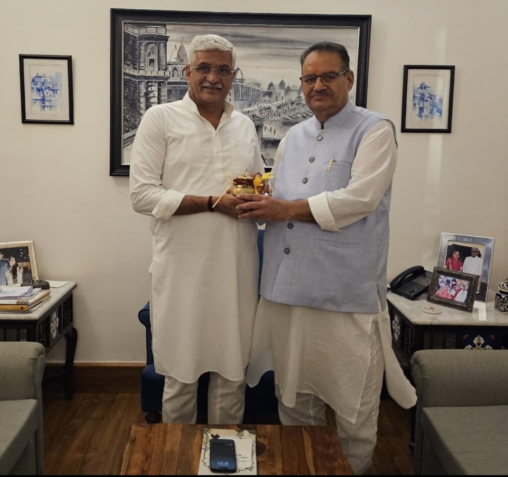 केंद्रीय पर्यटन एवं संस्कृति मंत्री गजेंद्र सिंह शेखावत से शिष्टाचार भेंट करते कृषि मंत्री गणेश जोशी