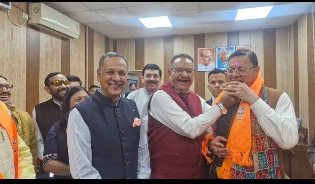 कैबिनेट मंत्री गणेश जोशी आज भाजपा प्रदेश कार्यालय में मुख्यमंत्री पुष्कर सिंह धामी को बिहार चुनाव में बीजेपी की ऐतिहासिक जीत पर मिठाई खिलाकर बधाई एवं शुभकामनाएँ देते हुए इस विजय को लोकतंत्र की जीत बताया। मंत्री गणेश जोशी ने बिहार विधानसभा चुनाव में एनडीए को मिली ऐतिहासिक और प्रचंड विजय पर हर्ष व्यक्त करते हुए बिहार की जनता के प्रति गहरा आभार प्रकट किया।