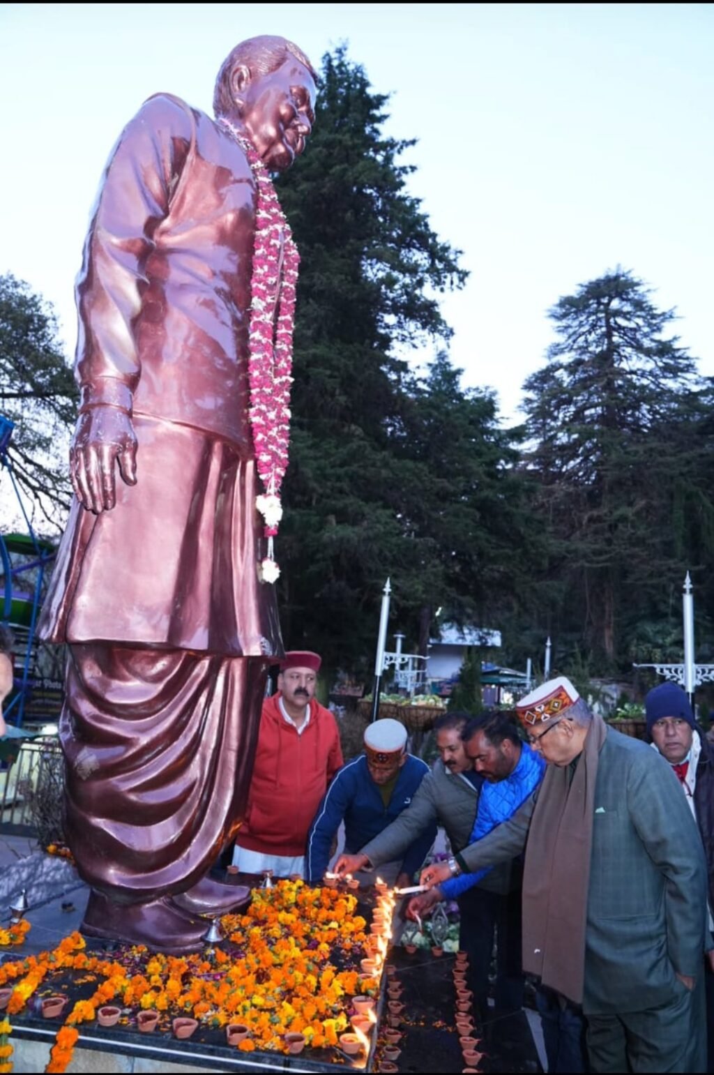 *मसूरी अटल उद्यान में पूर्व प्रधानमंत्री स्व. अटल बिहारी वाजपेयी की जयंती की पूर्व संध्या पर 101 दिए जलाकर उनको श्रद्धा सुमन अर्पित करते कैबिनेट मंत्री गणेश जोशी*