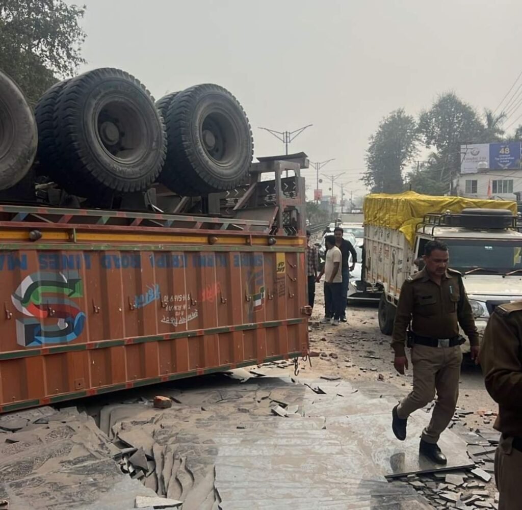 सहारनपुर की ओर से आ रहा मार्बल्स से भरा ट्रक मोहब्बेवाला के पास मुख्य हाईवे पर अनियत्रित होकर पलट गया, ट्रक के पलटने से उक्त मार्ग पर देहरादून से सहारनपुर की ओर तथा सहारनपुर से देहरादून की ओर आने वाला यातायात बाधित हो गया है, जिससे उक्त मार्ग व आस पास के मार्गो पर भी यातयात का दबाव बढ़ने से पुलिस द्वारा दोनों ओर से यातायात को डाइवर्ट किया जा रहा है। पुलिस द्वारा मौके से ट्रक को हटाकर यातायात को सुचारू करने का प्रयास किया जा रहा है।