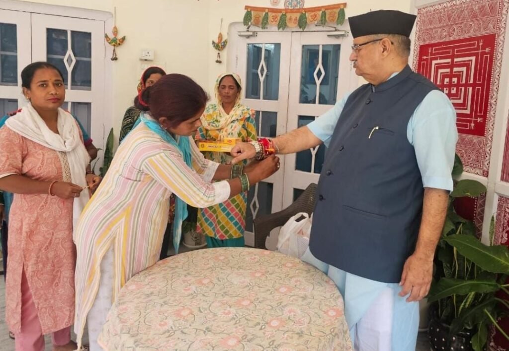 रक्षाबंधन के पावन अवसर पर आज हाथीबड़कला स्थित शासकीय आवास पर कन्या गुरुकुल महाविद्यालय देहरादून की छात्राओं एवं पर्यावरण मित्र महिलाओं ने कैबिनेट मंत्री गणेश जोशी की कलाई पर रक्षा सूत्र बांधकर उनके दीर्घायु एवं सुख-समृद्धि की कामना की। इस अवसर पर कैबिनेट मंत्री गणेश जोशी ने प्रदेशवासियों को रक्षा बंधन की बधाई एवं शुभकामनाएं दी। इस दौरान मंत्री जोशी ने सभी बहनों को उपहार भेंट कर सभी का आशीर्वाद लेते हुए कहा कि “रक्षाबंधन केवल भाई-बहन के स्नेह का पर्व ही नहीं, बल्कि यह हमारे रिश्तों में विश्वास, प्रेम और सुरक्षा के संकल्प का प्रतीक है।