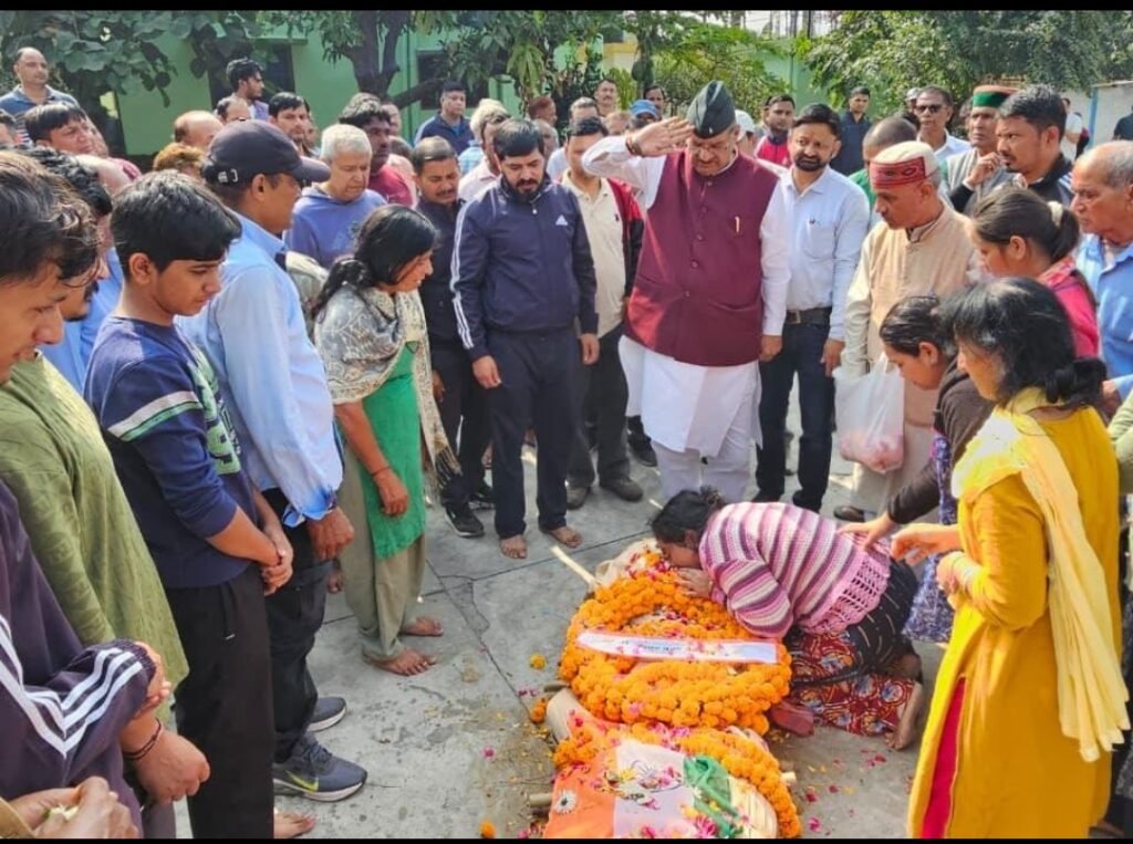 सैनिक कल्याण मंत्री गणेश जोशी आज कालिदास मार्ग स्थित उनके निजी आवास पहुंचे, जहां उन्होंने नायब सूबेदार के पार्थिव शरीर पर पुष्पचक्र अर्पित कर श्रद्धांजलि दी। इस अवसर पर मंत्री जोशी ने शोक संतप्त परिवारजनों से भेंट कर संवेदनाएं प्रकट कीं और उन्हें ढांढस बंधाया।